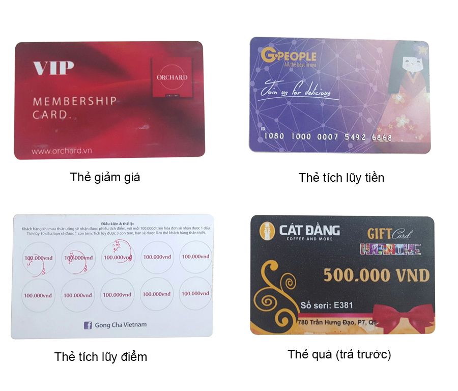 Một số mẫu thẻ khách hàng thân thiết, tích lũy điểm được sử dụng trong các nhà hàng, cửa hàng cà phê,......