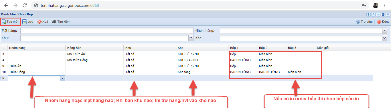_ Thiết lập nhóm hàng hoặc mặt hàng nào đó in vào bếp nào để tạo sự thuận tiện trong quá trình hoạt động