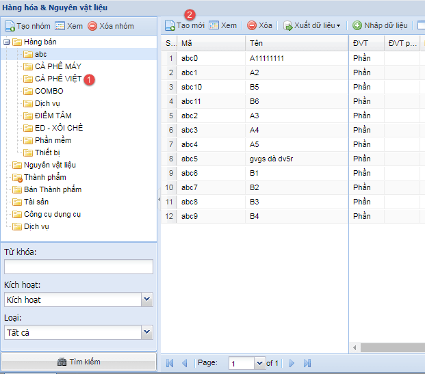 - Bước 1: Bắt đầu => Danh mục => Hàng hóa & Nguyên vật liệu