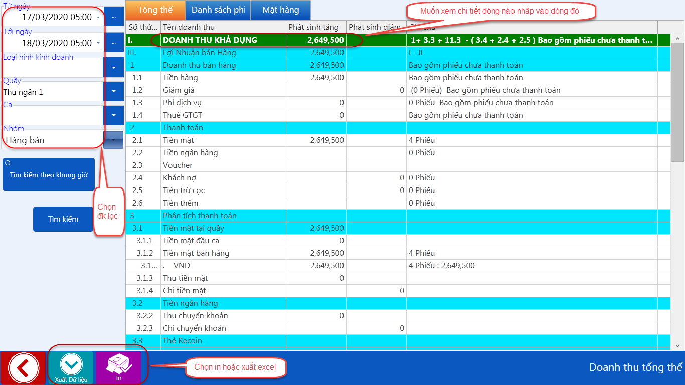 _ Sau khi hết ca hoặc hết ngày thu ngân cần kiểm tra và in báo cáo