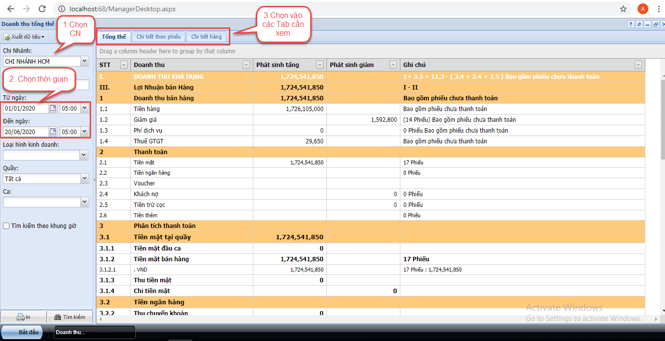 SAI GON POS: Hướng dẫn xem Báo cáo doanh thu tổng thể